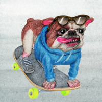 Skateboard Bulldog is Matt Furie’s first real-life dog artwork, originally created in 2020 as the album cover for Radical Dads.